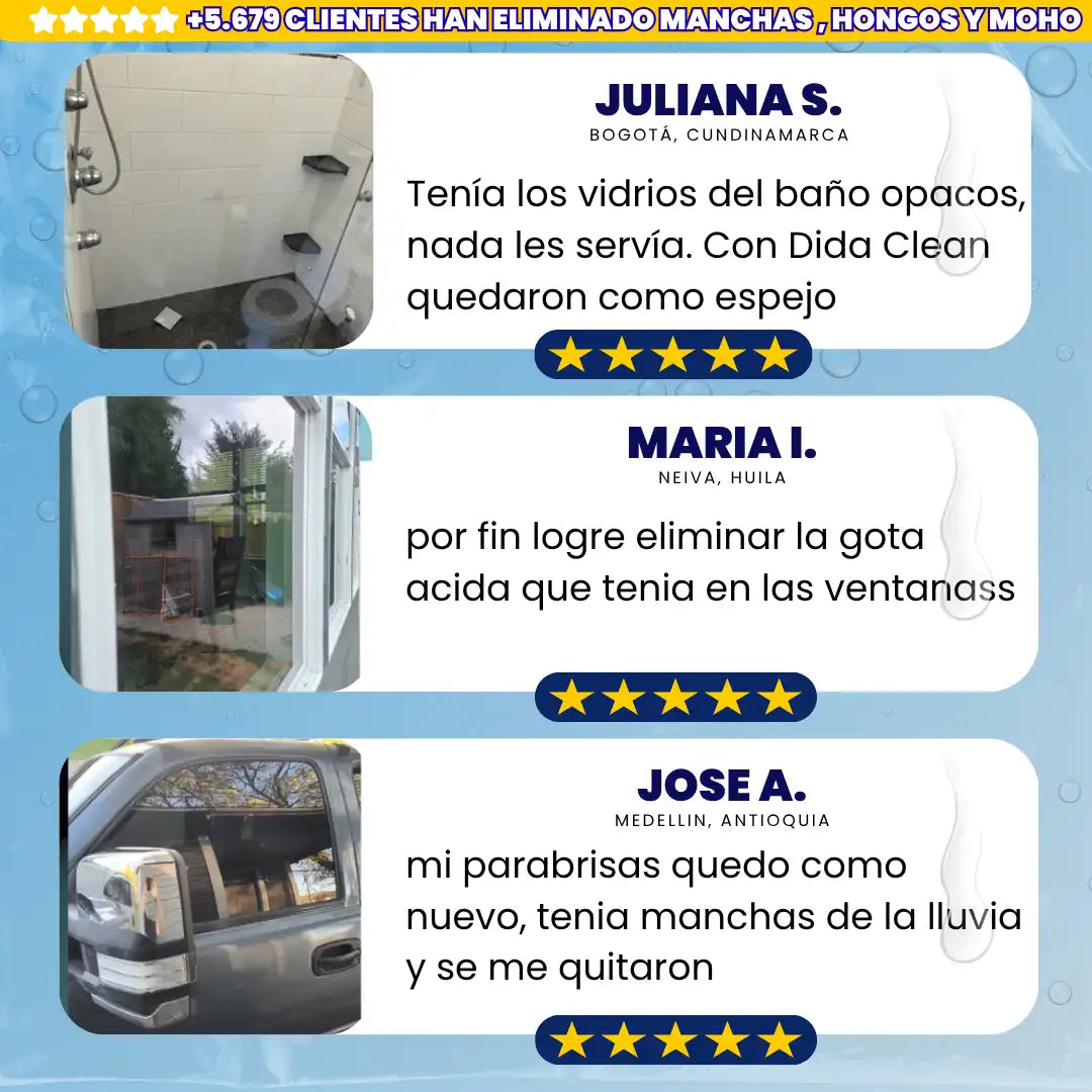 Tus vidrios no están viejos, solo necesitan el toque EFECTO DIAMANTE Remueve manchas de agua, grasa y moho, dejando brillo de espejo sin rayones